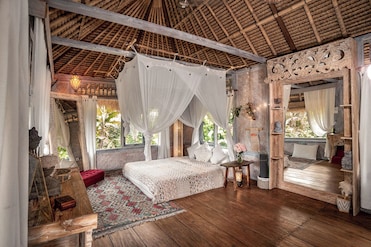 Escape to 1111 Alchemy Space, a luxury haven near Ubud Monkey Forest and the historic Ubud Palace. Unwind with a body treatment or massage at the onsite spa, then relax by the firepit in this serene garden oasis. Previous guests rave about their rejuvenating stay.