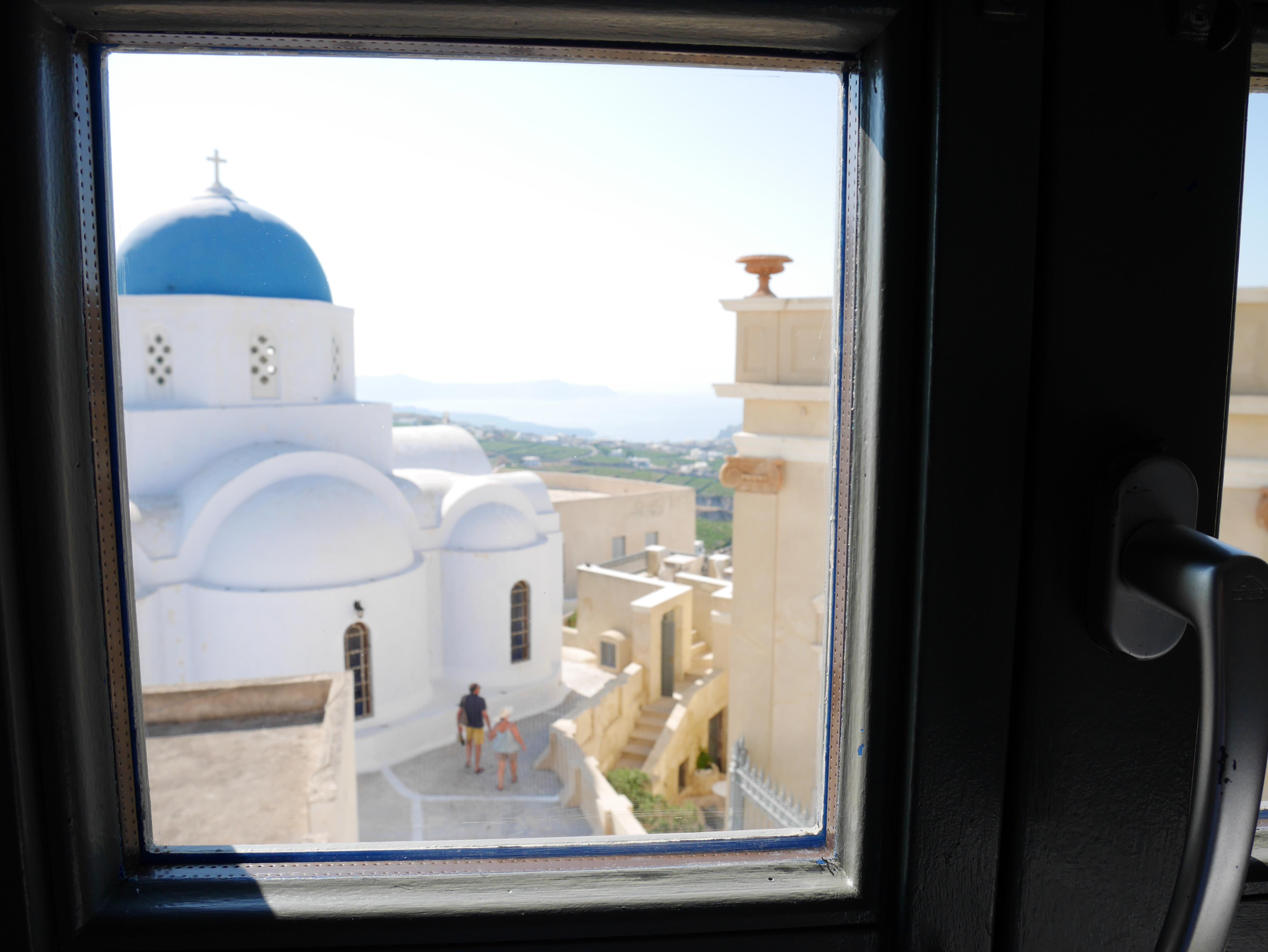 They upgraded us to the Atlantis room and it was AMAZING! The view of the caldera from the balcony was incredibly breathtaking. There was complimentary wine and water in the room and everything was very clean and comfy. Orestis was so, so friendly and helpful and Anna-Marie was available to arrange transportation from the ferry and to the airport. Just so you know, it is up a fair amount of stairs so if you have mobility issues it may not be the place for you, but if you're able bodied it's worth it!