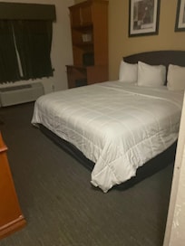 Outside was a little dirty with some trash, and when I was checking in, there was another customer that said she had a DoorDash order and it was taken. But as for me, I wish that the breakfast was open until 10 o’clock instead of 9 o’clock. Positive side is that the bed was really comfortable, but the pillow was OK. There was a slight stain on the comforter itself however, that didn’t deter me from staying there.