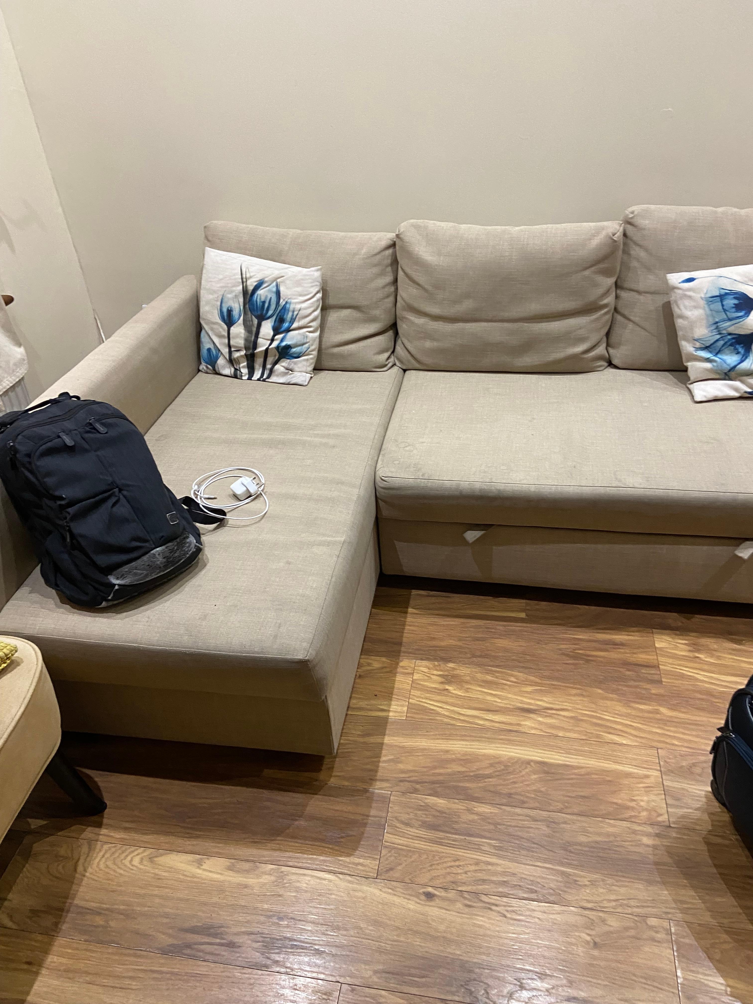 - divan dans le salon très abîmé (base et structure sous l'assise)