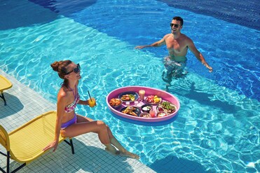 餐廳供應融合美食,享有池畔和海洋的景色。酒吧和提供素食和純素食選擇的自助早餐完善了餐飲場所。