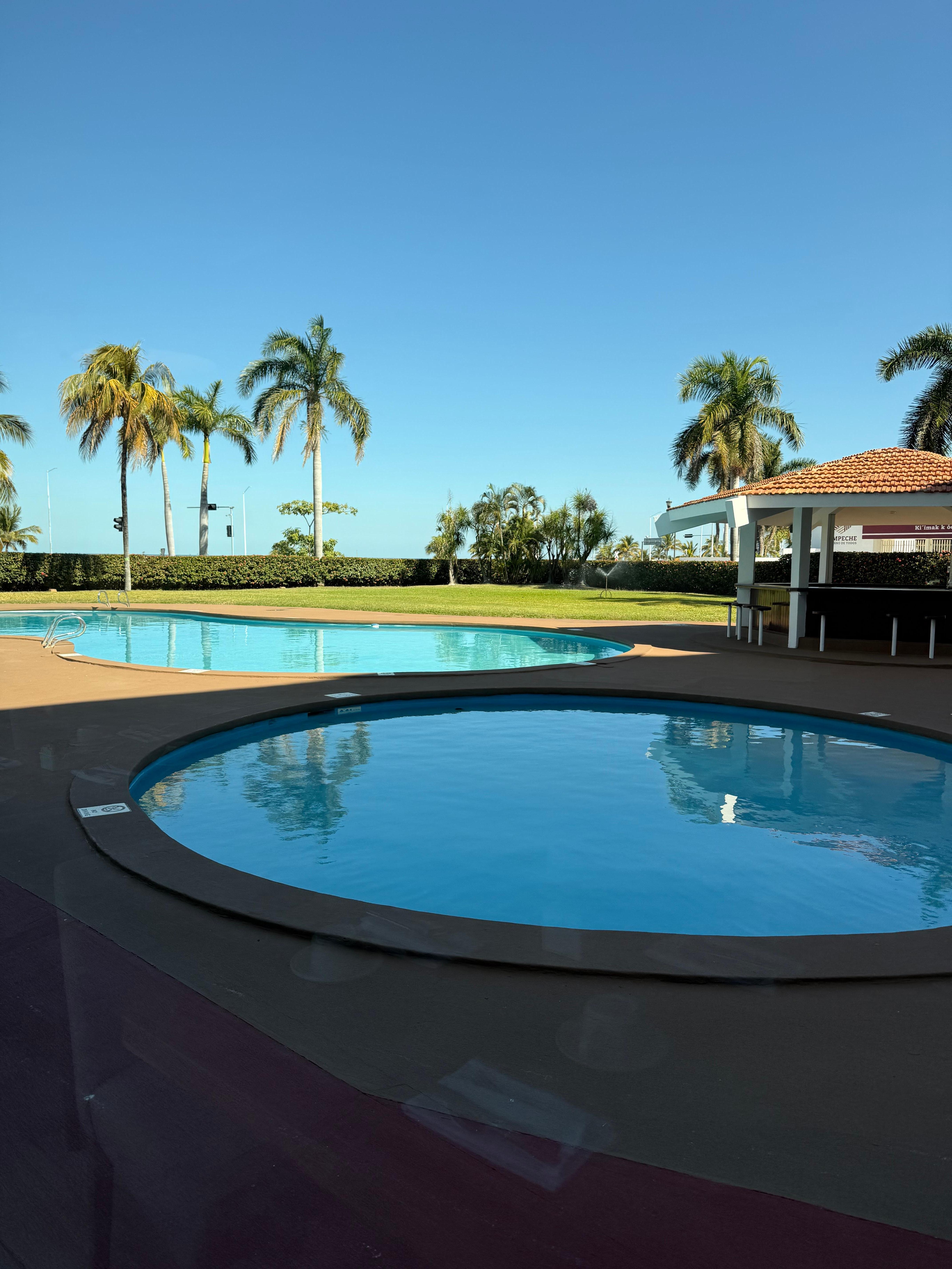 El hotel tiene un area de alberca muy linda y los espacios comunes son muy acogedores. El cuarto es sencillo, amplio y muy limpio.