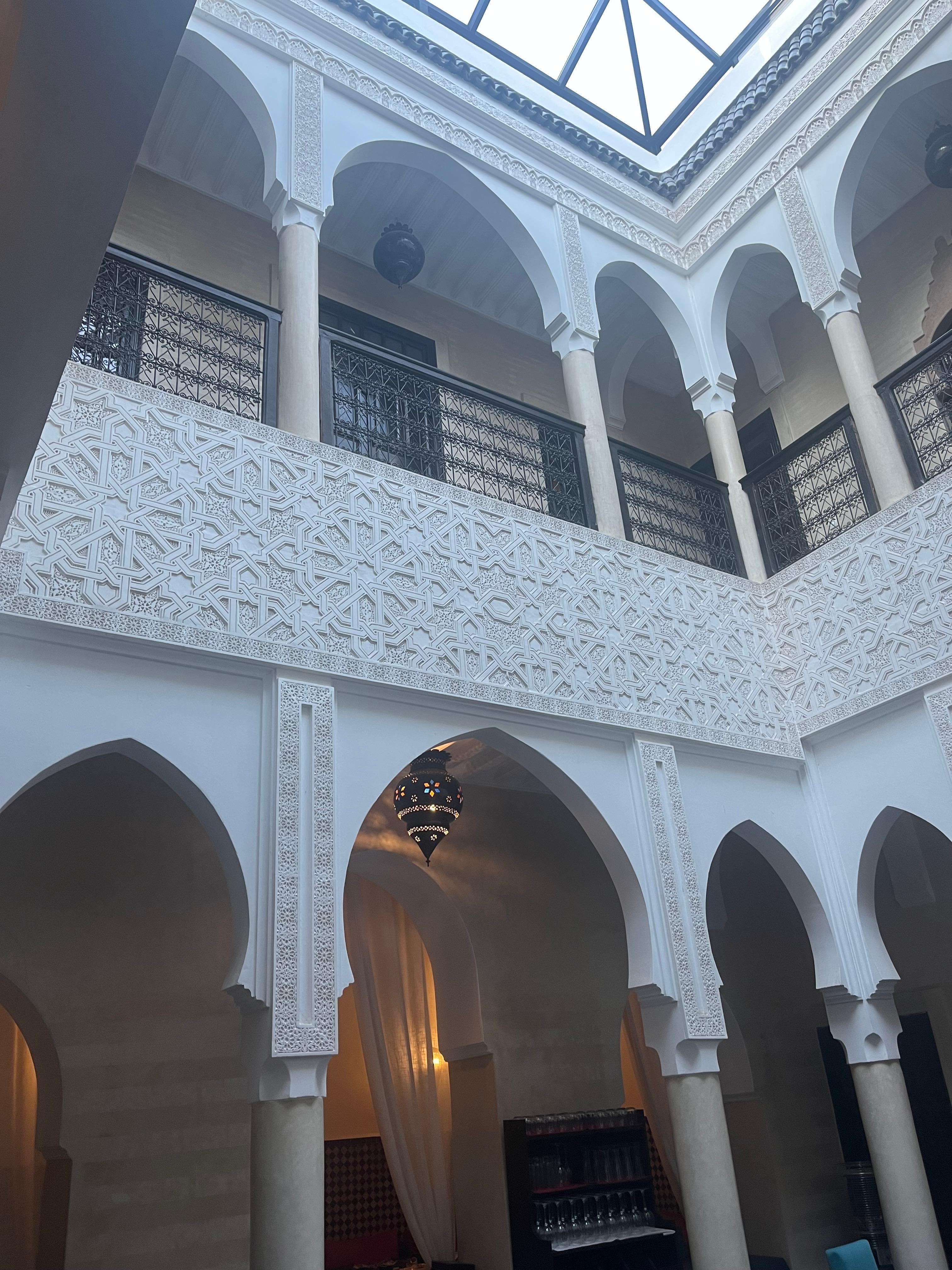 Magnifique Riad, situé dans une ruelle calme à 5mn de la place. Ma chambre était magnifique tout comme le Riad magnifiquement décoré, chic et raffiné. Le personnel est adorable et très serviable. Le petit déjeuner sous forme de rôtit buffet est top. Nous avons dîné une fois au restaurant : les plats sont fins et délicieux. Le roof top est tout aussi agréable pour se poser et boire un verre. On peut même y manger. Nous y retournerons