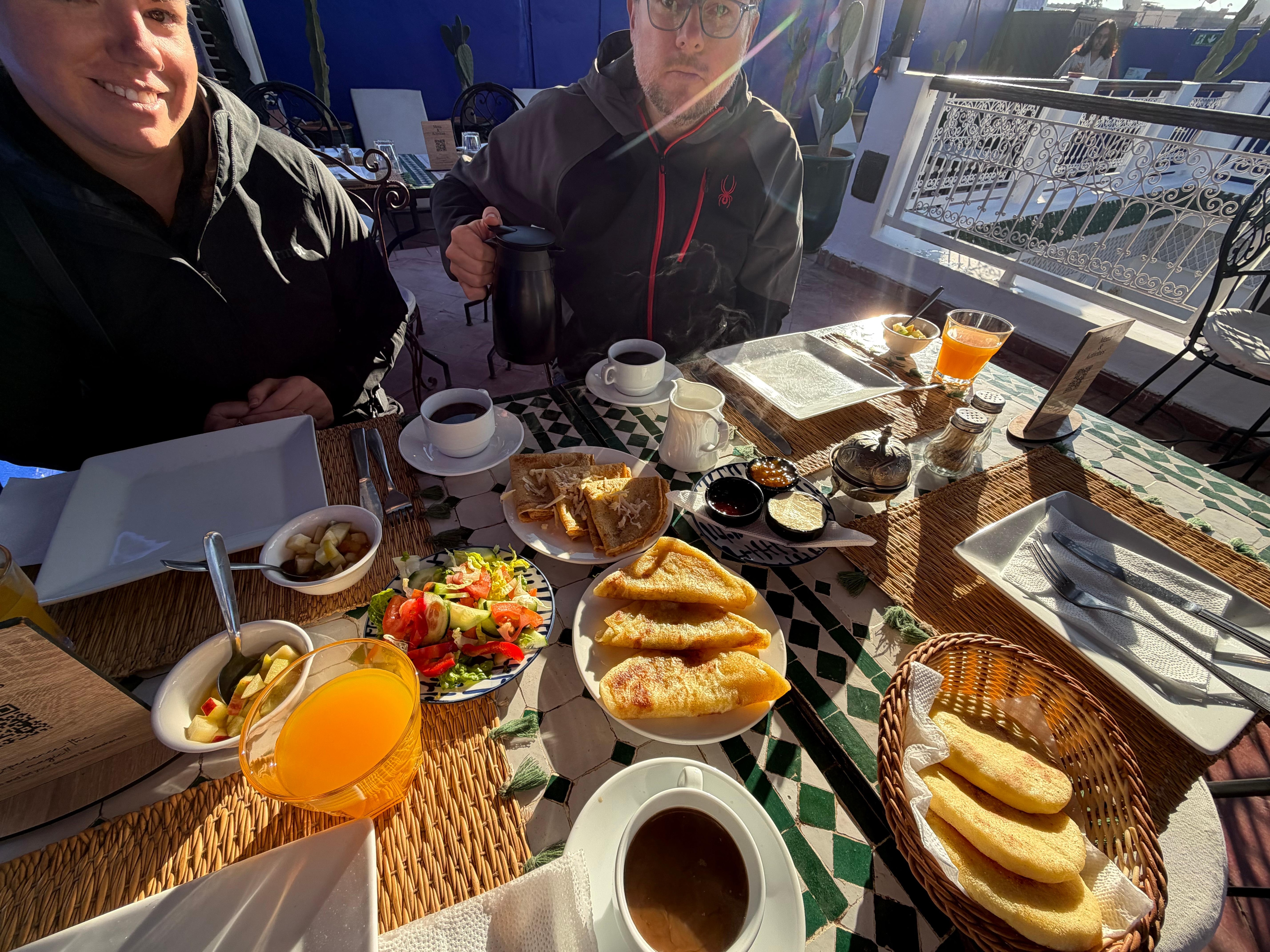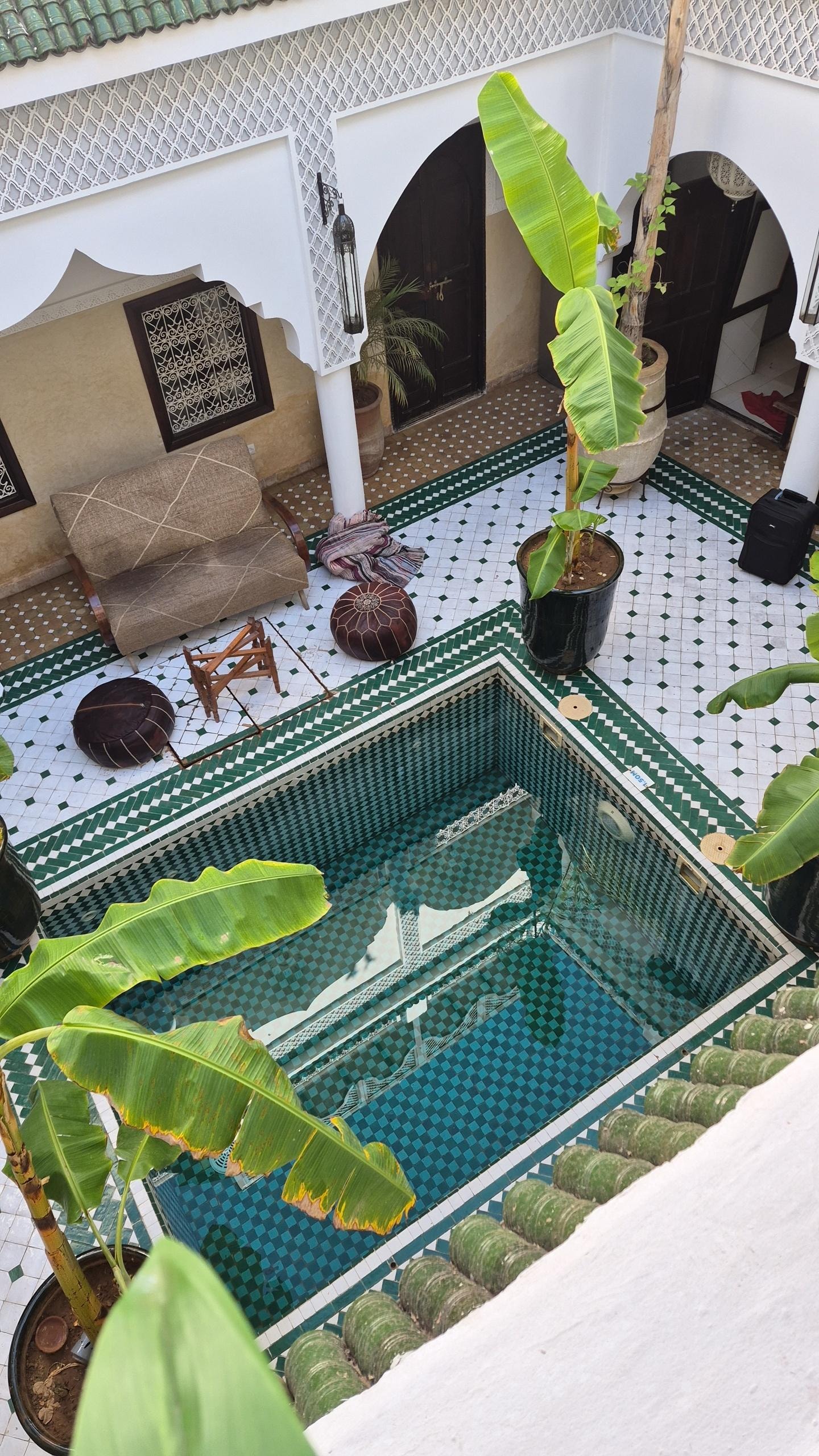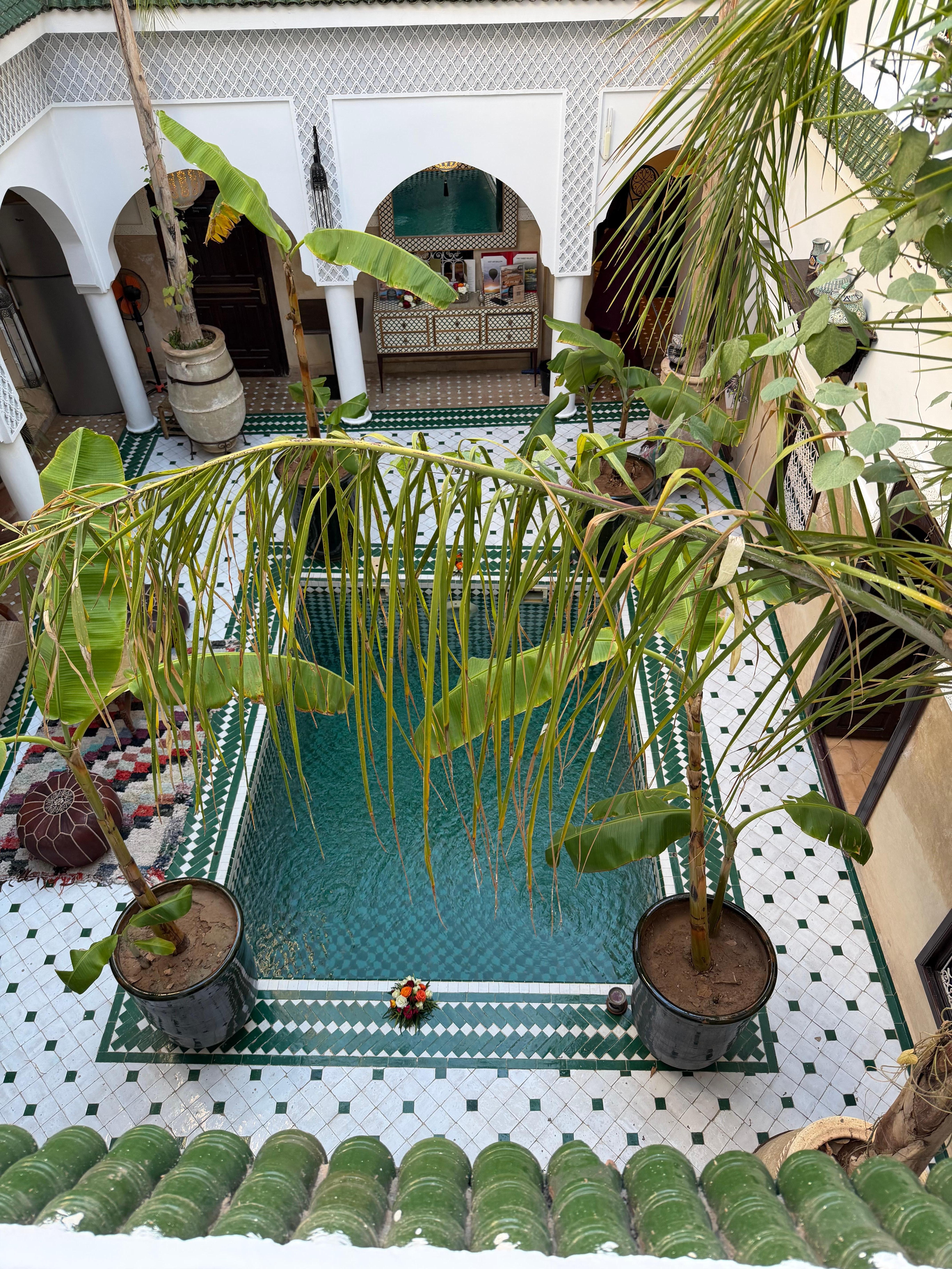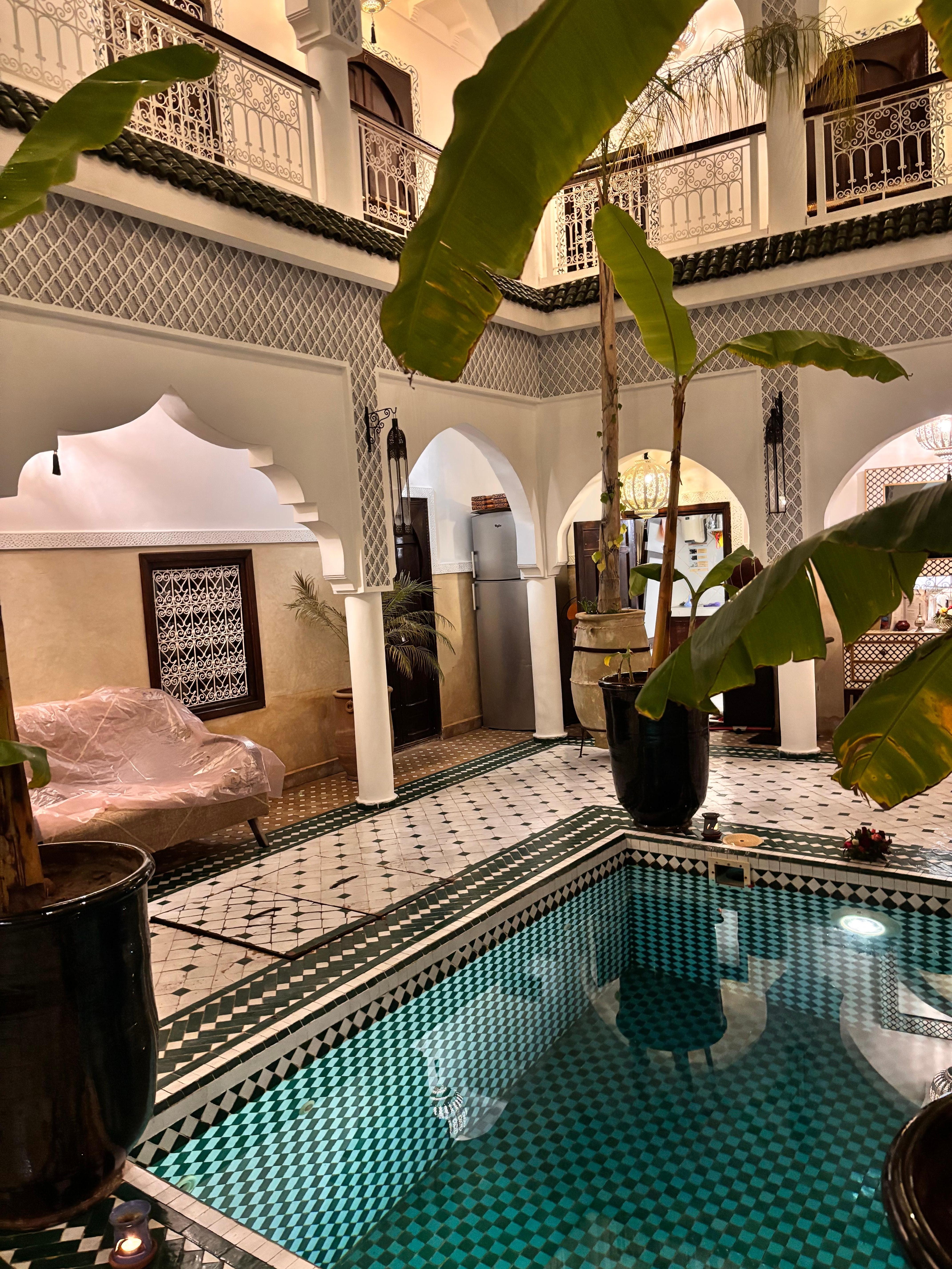The riad was very clean and fresh. It looked like it did on the photos which is nice. The staff was very friendly and helpful, welcoming us with tea and giving us advice on how to navigate the city. Unfortunately it was raining when we were visiting so we didn’t use the terrace, and without it there weren’t really any good areas to chill. Overall great experience.
